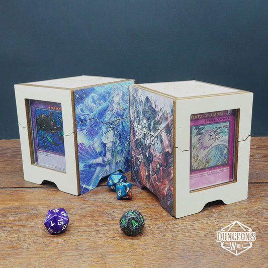 PORTA MAZZO YU-GI-OH IN LEGNO PERSONALIZZABILE CON STAMPA E INCISIONE CON CARTA A VISTA.